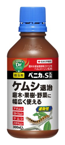 被害が広範囲にわたっているときは、液体殺虫剤を薄めて散布するのがおすすめです。こちらは毛虫に特化したタイプで、400~800倍に希釈したものを噴霧器などで散布します。噴霧器を持っていない場合は、100円ショップやホームセンターで売っているスプレー容器でも代用できます。また農薬ですので、取扱いには十分注意してください。身体を保護する服装で、注意書きをよく読んでから使いましょう。