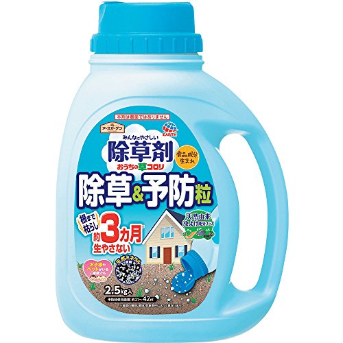除草剤は雑草が生えてから液剤をまくタイプのものだけでなく、粒剤で生えるのを予防する除草剤があります。草を枯らす除草剤と組み合わせると、より効果的です。