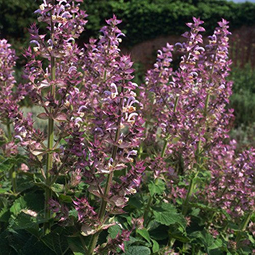 クラリセージは、ヨーロッパ産のハーブで草丈が1mほどもある大型の植物です。サルビアの花のように長い穂になって下から順に花びらを咲かせていきます。大きな植物で花の長さだけでも30~50cmもあり、花びらの色は淡いブルーや薄いピンクです。観賞用および薬用の用途のために栽培されています。