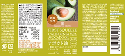 5つ目に紹介するおすすめのアボカドオイルは、レインフォレストハーブの低温圧搾一番搾りエキストラバージンカリフォルニアアボカドオイルです。