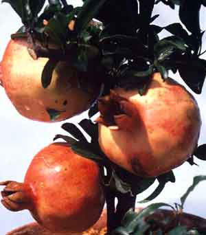 アメリカのカルフォルニアで品種改良され生産されている実ザクロです。よくスーパなど市場で出回っている品種で日本のザクロに比べ倍の大きさのサイズです。実が大きく酸味より甘味の強いものが多く生食やジュースに最適です。完熟すると果皮も中の実も真っ赤に色づきます。最近では庭木として栽培を楽しむ人も多くなり人気の品種です。