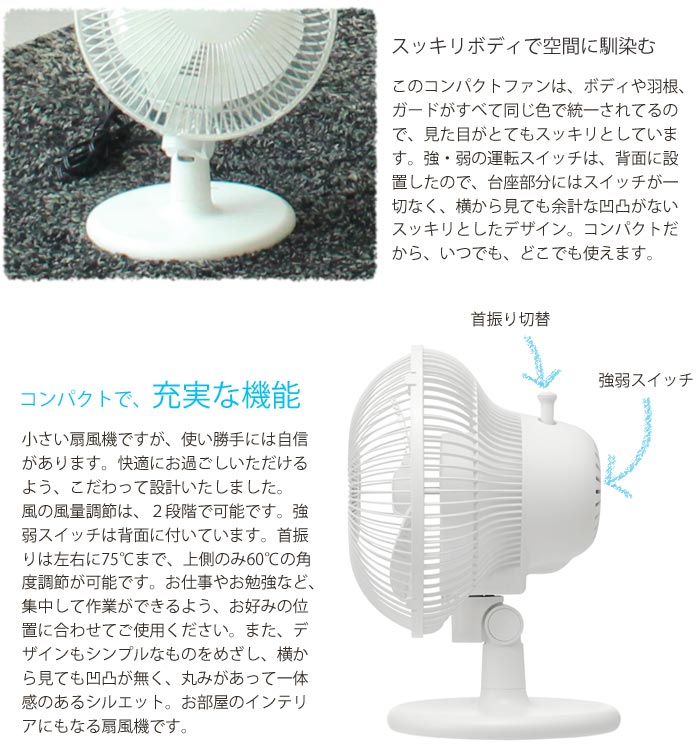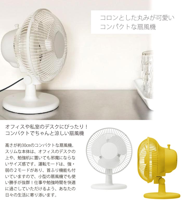 《±0/Y》 プラスマイナスゼロ コンパクトファン XQS-A220 高さ29.8cm 扇風機 シンプル 小型 卓上 サーキュレーター 風量2段階調節 左右自動首ふり 上風向調節 xqs-a220