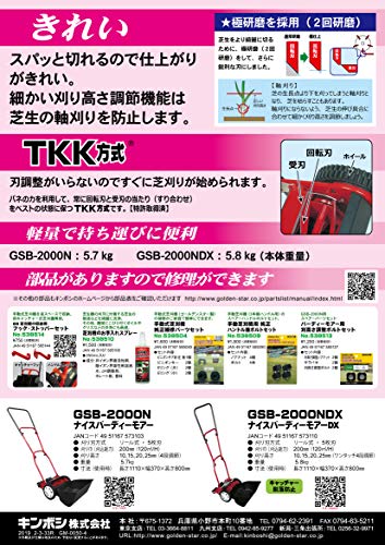 ゴールデンスター 「安心・安全・日本製」刃研ぎのできる手動芝刈機 ナイスバーディーモアー GSB-2000N