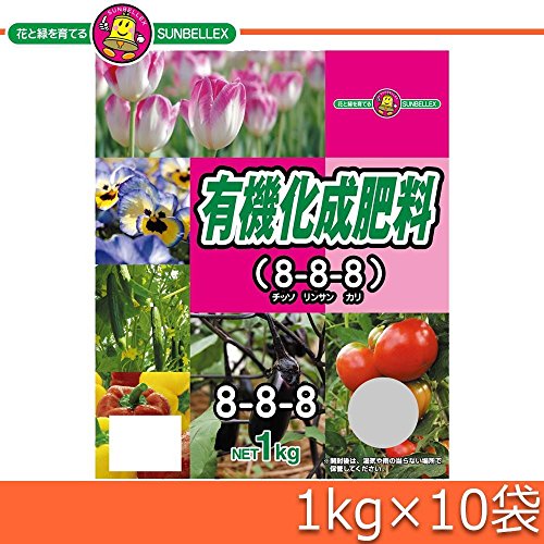 バランスの良い配合の高度化成肥料!! SUNBELLEX(サンベルックス) 家庭園芸用 有機化成肥料8-8-8 1kg×10袋 〈簡易梱包