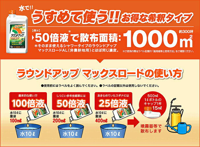 範囲が広すぎて手作業では間に合わなかったり、大きくなりすぎてしまったりする場合には、浸透性除草剤が有効です。おすすめの除草剤はラウンドアップです。30倍ほどに薄めて撒くと、根っこごと一網打尽にしてくれます。ただしラウンドアップは強力な除草剤ですので、ガーデニングなど他の植物に影響が出る場合には気をつけましょう。その場合は溶液を濃い目に溶かし、霧吹きを使って、ヨウシュヤマゴボウだけに噴射するといいでしょう。