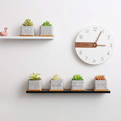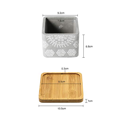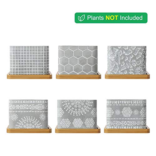 T4U 10cm 3号鉢 セメント鉢 コンクリート鉢 植木鉢 多肉植物 サボテン鉢 プランター容器 受け皿付き おしゃれ ガーデン グレー チェック柄?花柄 6点セット