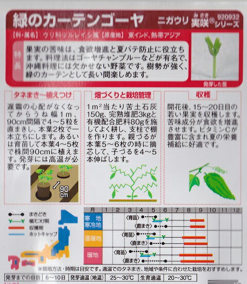 ゴーヤは苦味のある特徴的な味で、栄養価が高く、育てるのに手間もさほどかからず簡単な夏野菜です。グリーンカーテンにして暑さ対策もできるので、食べるだけでないメリットがあり、人気があります。種まきは気温が上がる4月以降が発芽しやすく、収穫時期は7月中旬ごろからです。葉同士が重なると日光が当たりにくくなるため、定期的に摘葉し、プランターは大型のものにします。