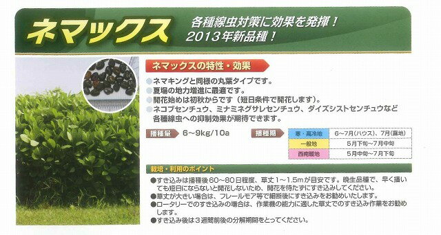 - 栽培適期:5月下旬〜7月播種→60〜80日後にすき込み
