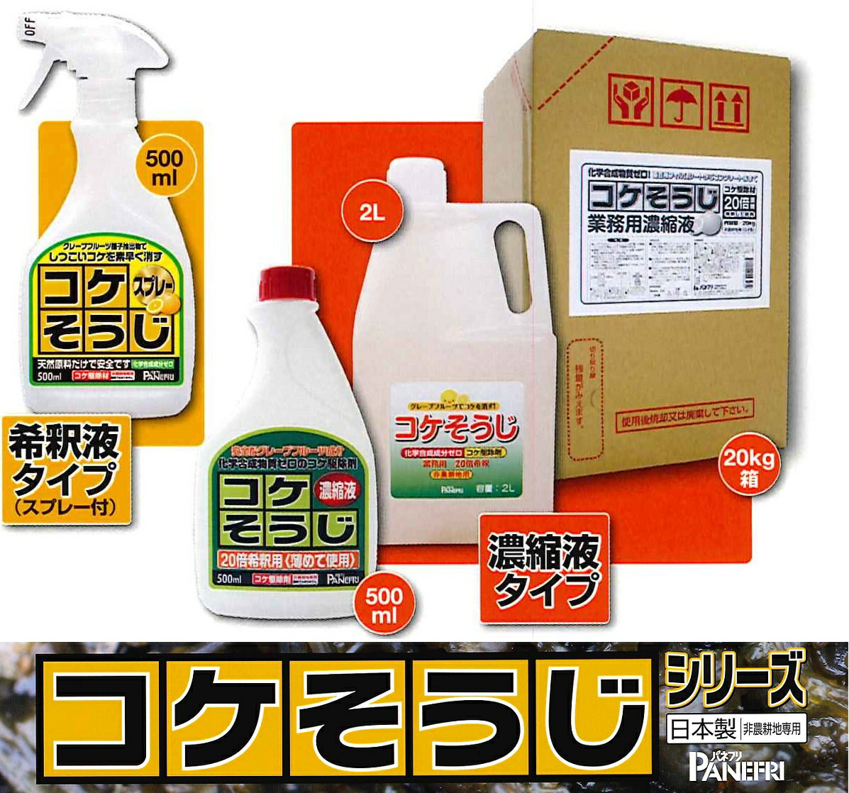 イシクラゲに効果があると紹介されている除草剤が「コケそうじ」です。コケそうじには、そのまま使えるスプレータイプと使用するときに20倍に薄める原液タイプがあります。駆除方法は、湿っている状態のイシクラゲにたっぷりとコケそうじを散布するだけです。