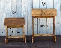 リサイクルウッドフラワースタンドは、素朴でぬくもりのある風合いで人気があります。地球にやさしく耐久性も高いリサイクルウッドを使用しているのもうれしいポイントですね。プランター台の下段にも植物を置けて、高低差を出すとガーデニングの幅も広がります。ナチュラルなハーブの寄せ植えにしてもかわいいですよ。
