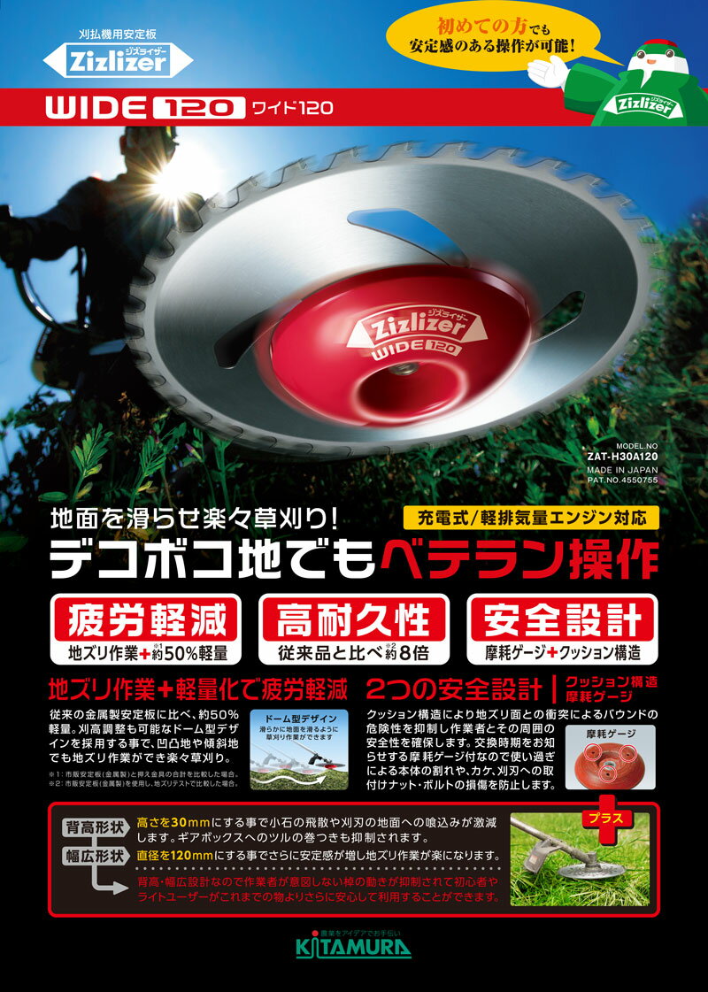 [メール便] ジズライザー WIDE120 ( ワイド120 ) ZAT-H30A120 赤 安定板 草刈り機用部品 北村製作所 三冨D 送料無料 ネコポス