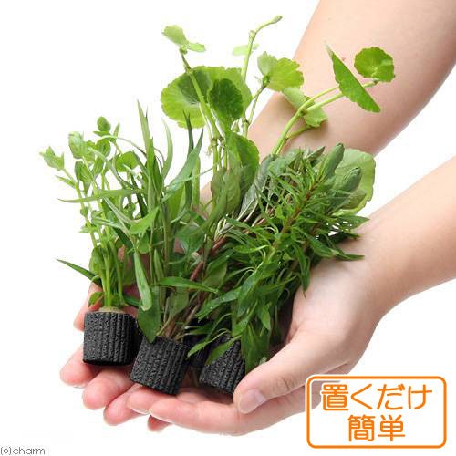 (水草)置くだけ簡単 マルチリング・ブラック(黒) おまかせ有茎草5種(水上葉)(無農薬)(計5個) 本州・四国限定[生体]