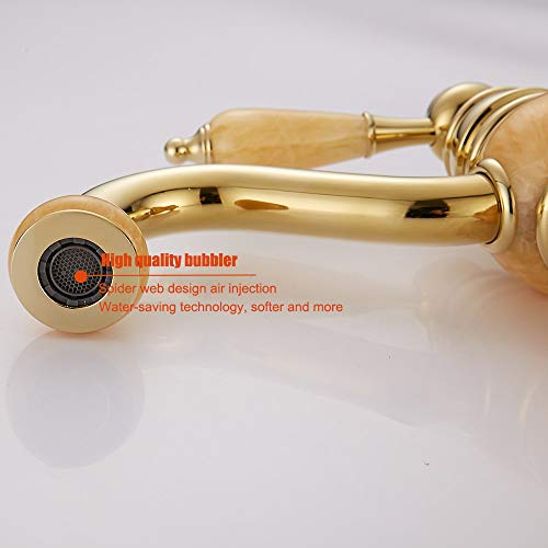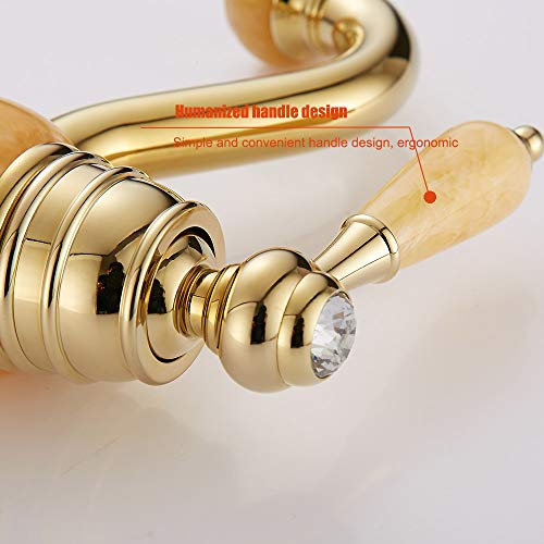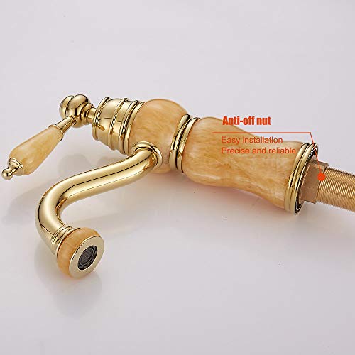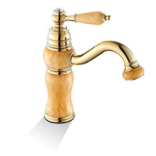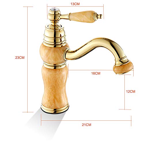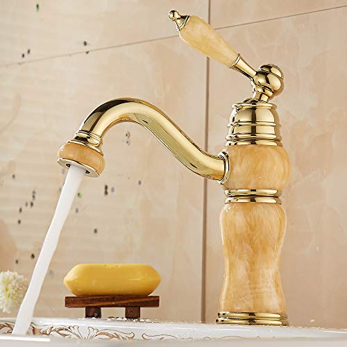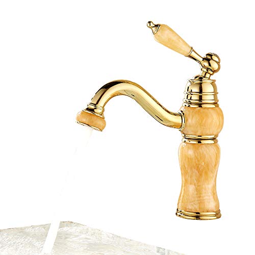 Gffxixi蛇口銅天然翡翠ゴールドレトロ盆地お湯冷たい蛇口ヨーロッパアンティーク上カウンター盆地蛇口洗面台