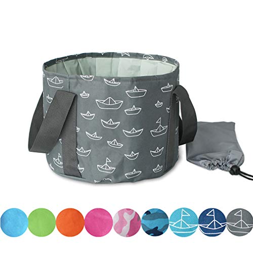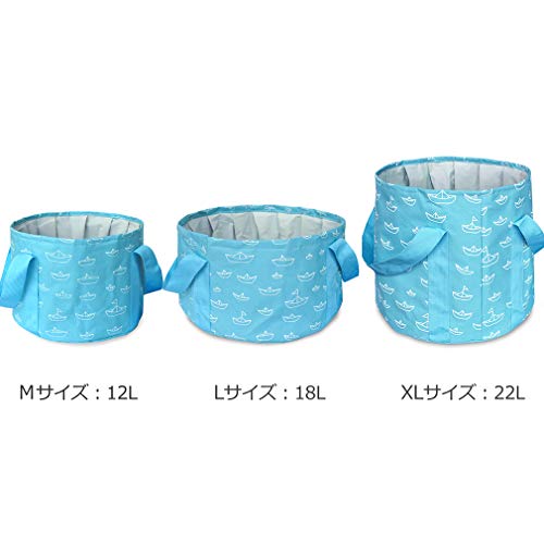LoveSun バケツ 折りたたみ コンパクト 12L 18L 22L おしゃれ 多色 超軽量 ポータブル アウトドア 釣り キャンプ ハイキング 洗車 防災グッズにも 耐熱 収納袋付き (グレー帆船 M)