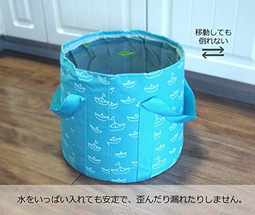 LoveSunの折りたたみバケツは、おしゃれでかわいい柄と豊富なカラーバリエーションが人気です。小さく丸めて折りたたむことができ、専用の収納バッグもついています。12L、18L、22Lの3サイズから選べ、布製でありながら中にものをいれなくても自立するタイプです。