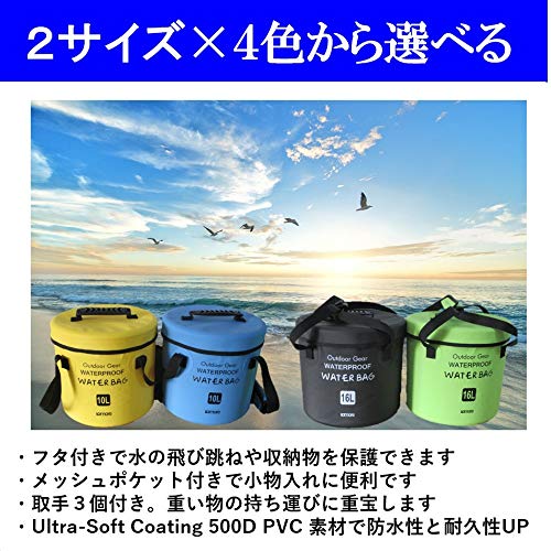 水が入るバッグ 海水浴 潮干狩り キャンプ 釣り 防災 磯 防水バケツ トートバッグ 15L 持ち運びに便利 アウトドア おしゃれ 撥水 (ブラック)