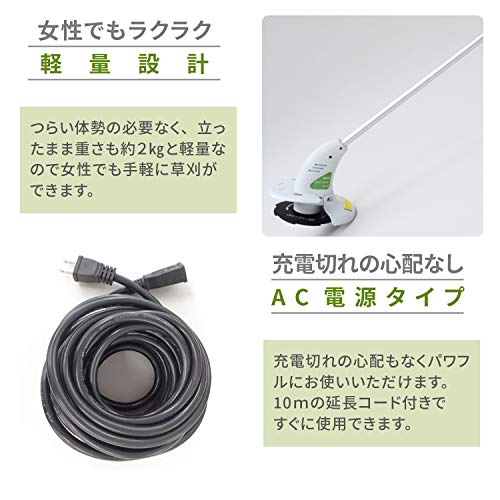 山善の電気草刈機は、他メーカーと比較すると価格が安いものが多く、初心者やライトユーザーにおすすめです。口コミにはパワーが物足りないという意見が散見されますが、庭先の柔らかい草を刈る程度であれば問題なく使え、約2kgの本体は女性でも簡単に持ち運べます。