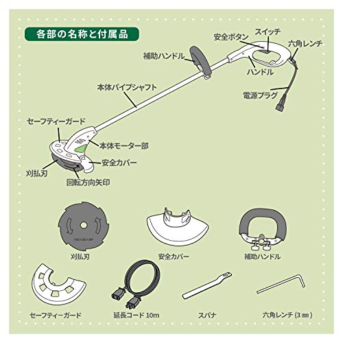 電動草刈機はコンパクトで操作しやすく、機械に詳しくない人でも簡単に使うことができますが、危険性ではエンジン式と変わりません。正しい服装で安全確認を行い、ケガのないよう気を付けて作業してください。