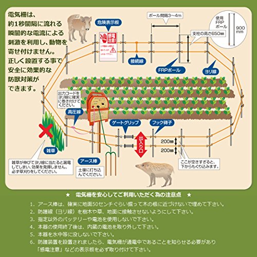 猪や鹿、イタチやタヌキなどの対策に電気柵を考えているかたにおすすめなのが電気柵のお得セットです。2段張りに必要な材料がセットになっており、手軽に設置できます。エリアチェッカーもついているため確実に接続できるかどうかもすぐに確認でき、不安な接続もすぐに確認可能です。使い方は簡単で柵を立てたら地中にアースを埋めるだけで、害獣が触れれば電気ショックを与えられます。