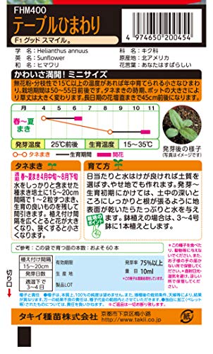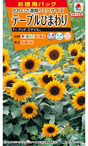 タキイ種苗のグッドスマイルは、草丈が30cm~50cmとミニサイズのヒマワリです。花粉が出ないタイプなので、鉢や切り花を室内に飾っても部屋が汚れません。種をまいてから50~55日という速さで生育することも魅力のひとつです。