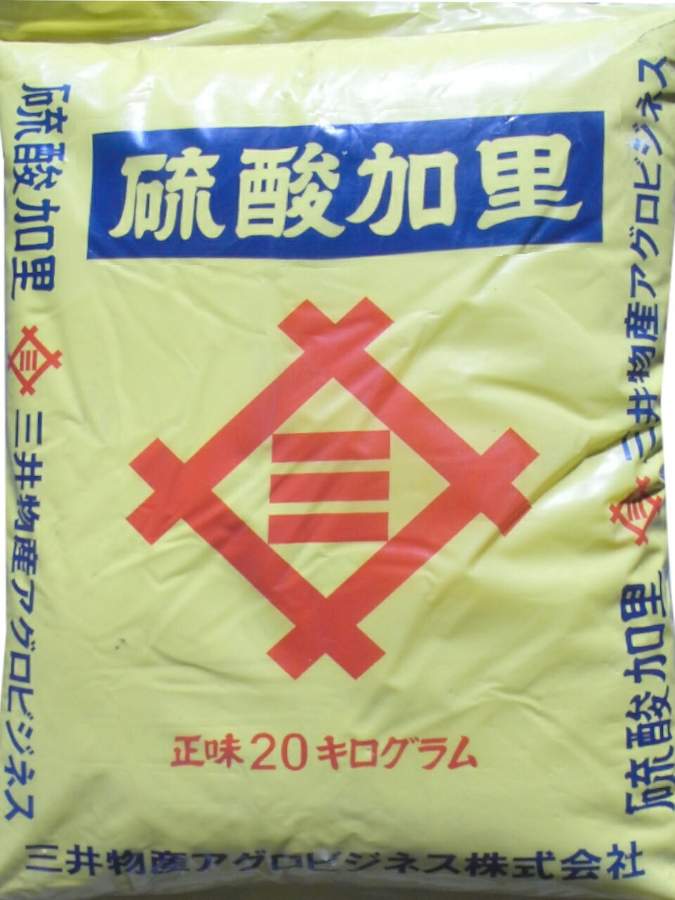 硫酸カリは塩カリを加工して精製された化学肥料です。水に溶けやすく塩素を出さないためイモ類などの肥料として適しています。また、土壌に肥料成分が蓄積して連作障害の要因となる塩類集積が塩カリに比べておきにくいのも特徴です。ただし、硫酸加里の硫酸イオンが土壌を酸性にするため、pHには注意してください、