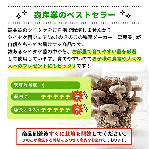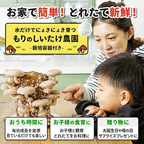 「もりのしいたけ農園」は、しいたけが栽培できるキットです。栽培ブロックや培養袋、栽培説明書が入っており、購入後すぐに栽培できます。暑い時期に栽培すると上手に育たない場合があるため、18℃〜25℃を保てる環境で育てましょう。