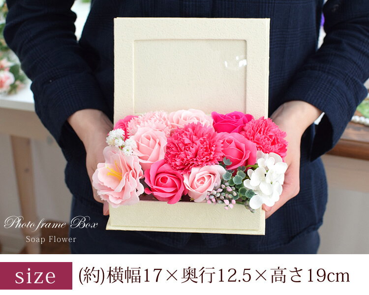 フォトフレーム ボックス ソープフラワー アレンジ 誕生日 プレゼント 女性 女友達 母 祖母 花 結婚祝い 写真立て おしゃれ 卒業記念品 卒業祝い フラワーギフト お祝い 退職祝い 送別会 お花 母の日 シャボンフラワー box フラワーソープ メッセージカード付き バラ