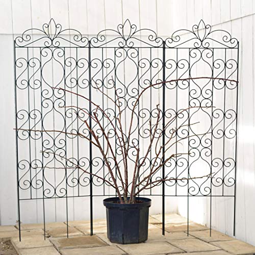 こちらの西洋の古い建物を思わせる、趣のあるフェンスタイプのトレリスは上下に分かれるので、使用しないときにはコンパクトに収納できます。2枚組なので、連結して庭の区切りとして飾るのもおすすめです。