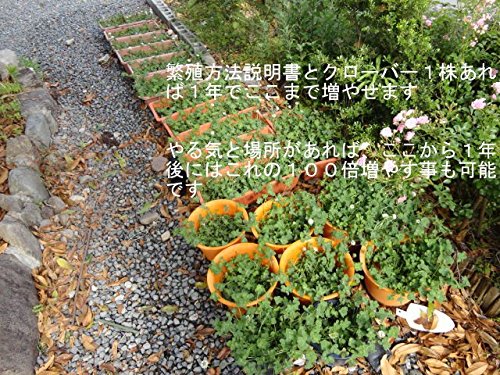 四葉の多い株を掛け合わせて品種改良を重ね、そのクローンを繁殖させたクローバーです。主に出るのは三つ葉、四葉、五つ葉ですが、たまに6~10枚まで出るときもあります。しっかりした苗で購入者のレビューもよく、自宅で繁殖させられます。