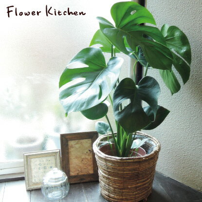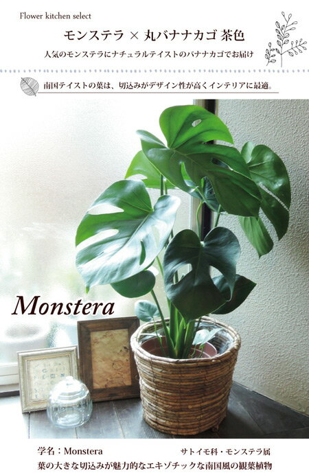 (観葉)【あす楽】『 モンステラ + 丸バナナカゴ 茶色 受け皿付き 』【送料無料】 育てやすい モンステラ インテリアグリーン ボタニカルライフ 誕生日 開店 祝い 新築祝い インテリア 観葉植物 即日発送 FKTK