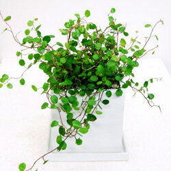針金のような茎に丸く平たい小さな葉を密集してつけるワイヤープランツは、インテリアにできる観葉植物として人気があるので、デスク回りにも置けるミニサイズもあります。