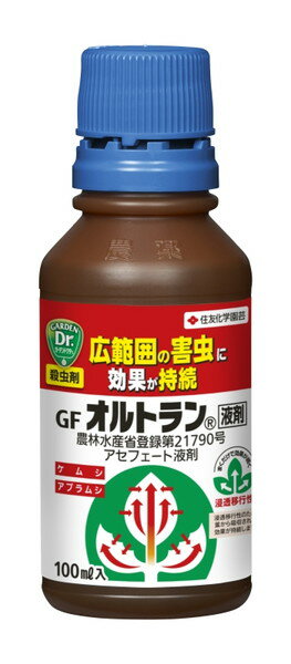 害虫退治で有名なのが、1973年から使われているオルトランです。有効成分「アセフェート」は水溶性で、植物体内で安定的に作用するため、効き目が長持ちします。基本的な使用量や回数を守れば哺乳類や鳥類、魚類への毒性は低く、安心して使える薬剤です。液剤タイプは水で250~500倍に薄めて、葉に散布して使用します。