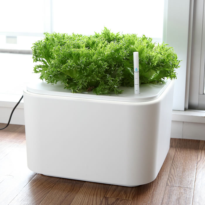 水耕栽培キットホームハイポニカプラーボは、スリムなデザインで最大25株の葉野菜を1度に栽培できます。基本は種まきからの栽培ですが、土をすべて洗い落とせば苗からの栽培もOKです。
