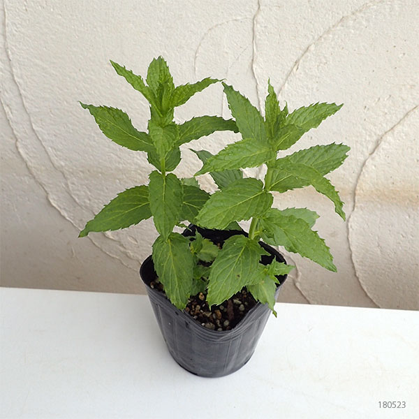 ペパーミントはスペアミントとウォータミントとの交雑種です。匂いの強いミントで、葉っぱの葉脈がはっきりとしています。地下茎が柔らかく、すぐ切れてしまうことでも知られています。