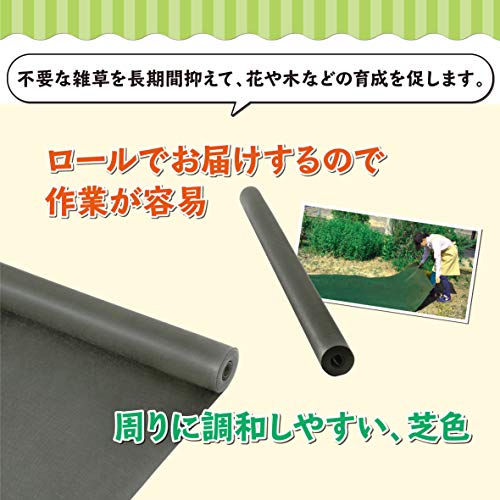 TBK【業務・家庭兼用】防草シート 5年耐久 1mX10m 除草シート 芝緑色 雑草シート 透水良 切ってほつれない 材料が違うから長持ち