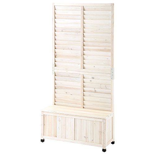 下部にプランターボックスが付いているラティスもあります。一体型なので、中に植物の鉢を入れるだけで統一感のある空間が仕上がります。植物だけでなく、ジョウロや掃除用具を入れても雰囲気を損いません。フェンスや庭の休憩スペース、玄関先、壁伝いなど場所を選ばず利用しやすいです。