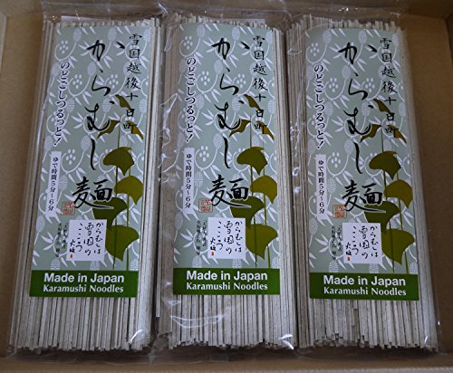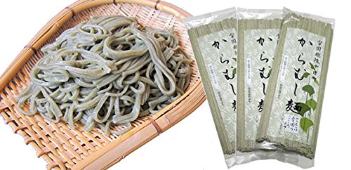 カラムシは衣類の原料として用いられた歴史が長いこともあって、食用草としての利用は、ほとんどありませんでした。しかし近年になって、新潟県十日町市でカラムシの葉を練り込んだ「からむし麺(うどん)」や「からむし茶」が誕生しました。これらの商品は通販サイトでも扱っています。