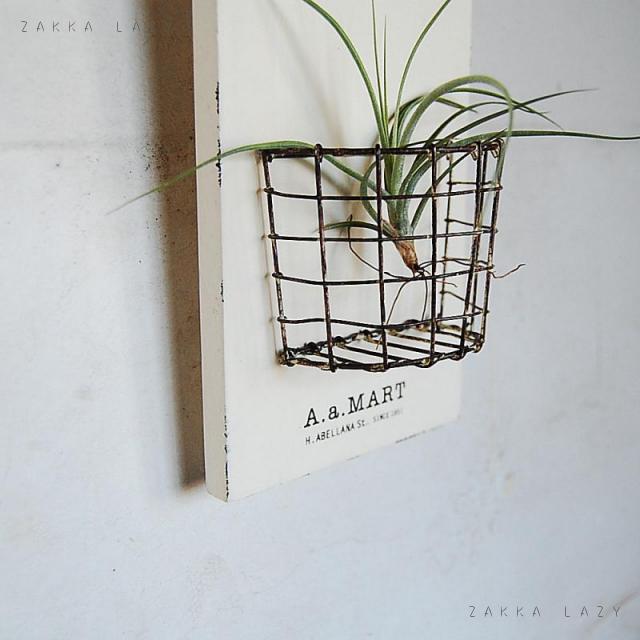 アンティーク調のボードにアイアンバスケットのポケットがついているハンギングバスケットです。多肉植物やエアプランツ・小型の着生ランなどをレイアウトして、カジュアルなインテリアとして楽しむとよいでしょう。壁掛けタイプは季節や植物にあわせて、気軽に移動できるところがメリットですね。