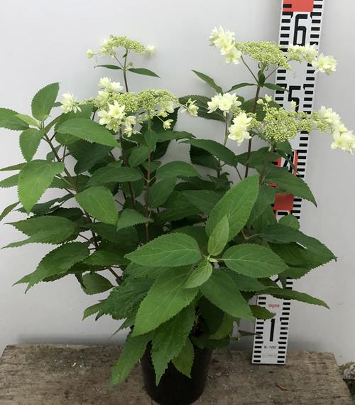ハイエススターバーストは、アナベルを八重咲きにした品種です。外側から開花するため、咲き始めはガクアジサイのような花形をしていますが、徐々にてまり状のボリュームある花に変わるのが特徴です。咲き始めの明るいミントグリーンが、咲き進めながら白くなる様子も楽しめます。八重咲きの花は花もちがよく、花期も長いことから、長期間鑑賞できる紫陽花です。