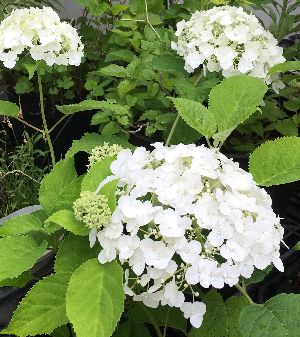 白い紫陽花のなかでも、近年人気があるのがアナベルです。庭木としてはもちろん、寺院や公園などの植栽や街路樹として見かけることも多いほか、レストランなどでもナチュラルな外観造りによく使用されています。