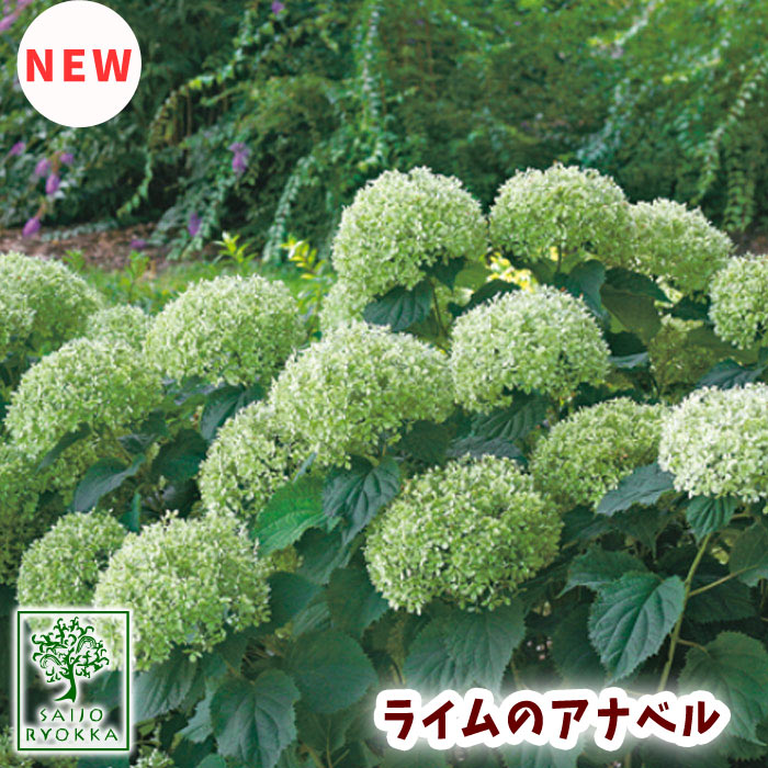 ライムのアナベルはインクレディボールと同じ性質を持った紫陽花で、普通のアナベルよりも茎が太いため雨風害に強いことが特徴です。成長すると大きな株になるので、広い場所での栽培に適しています。切り花やドライフラワーにも向いている品種です。