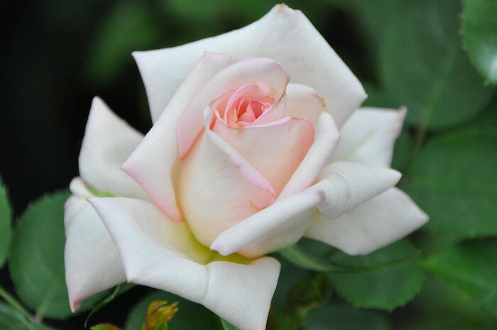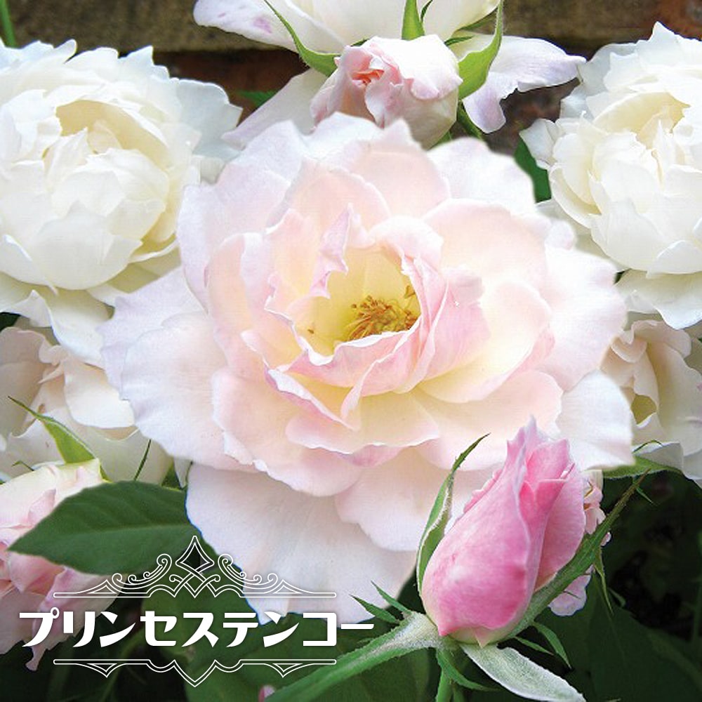 プリンセステンコーは、2008年に河本純子氏が作出しました。淡いピンク色のつぼみが咲き進むごとに白く変わり、満開時には真っ白な花になる様子が神秘的で美しいバラです。咲き方はふんわりとした丸弁カップ咲き、香りの種類は優しく甘いフルーツ香で、花の美しさを引き立てています。