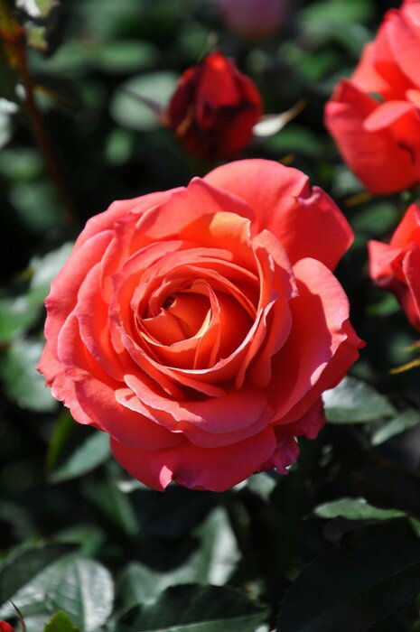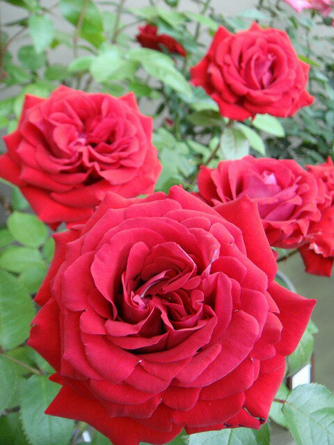 イングリッド・バーグマンは、1984年にデンマークで作出されました。花径10cm~12cmのふくよかで端正な花形、輝くような緋赤色、厚手の照り葉、樹形1m~1.2mの整った株姿を特徴としています。香りは弱いですが、それ以上に見る人を魅了する美しさと気品を持つ品種です。2000年にバラの殿堂入りを果たしています。
