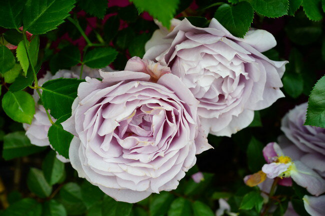 ノヴァーリスは、2010年にドイツの老舗バラ育種会社のコルデス社が作出しました。堅くしっかりとした枝先に、花径9cmのラベンダー色の花を3輪~5輪の房咲きにします。青バラはほかの種類と比べて性質が弱く、栽培が難しいとされていますが、ノヴァーリスは耐寒性と耐病性にすぐれ、「最強の青バラ」と呼ばれるほどの強健種です。