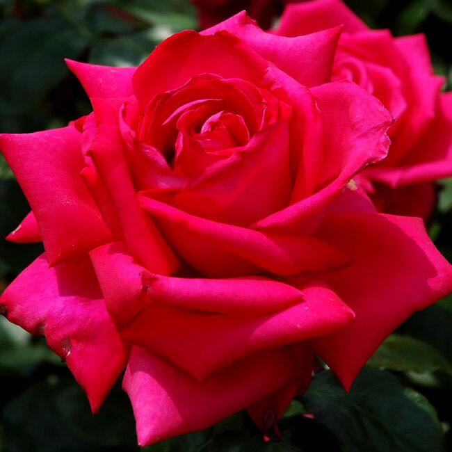 エリザベス・テイラーは、1986年にアメリカで作出されました。ショッキングピンクの花色、花径13cm以上の大輪で優雅な剣弁高芯咲き、軽めのスパイシーな香りが特徴です。樹高は130cm~160cmで、満開時は名前の由来にもなった映画女優を思わせる、華やかな雰囲気と存在感にあふれています。