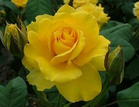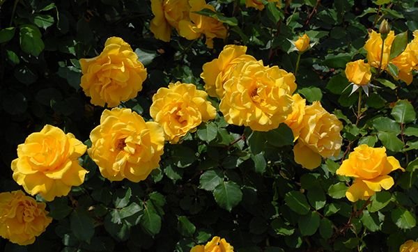 ヘンリー・フォンダは、1995年にアメリカで作出されたバラです。濃い純黄色は作出当時から高く評価されていました。ティー香で軽めに香ります。耐暑性もある優秀な品種で、バガテル金賞、NRS金賞、ポートランド金賞、AARS、ARSナショナル金賞など、数々の栄えある賞を受賞しました。