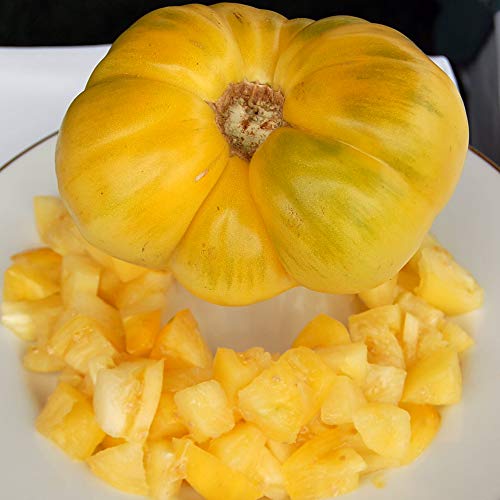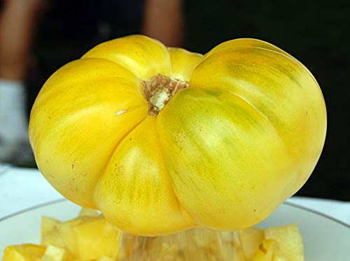 ホワイトクイーンと名前が付くだけあり、白いトマトの中でも極めて白色に近いトマトです。約340gまで大きくなり、へたの周りはボコボコしています。果実の中にピンクの筋が入ることもあります。甘くフルーティーな味わいです。