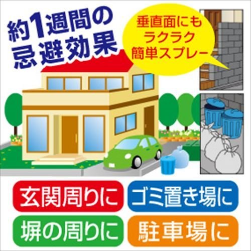 犬猫の見張り番は、動物の嫌がる刺激臭成分が含まれていてます。頻回に被害がある場所にあらかじめスプレーしておくと効果的です。においはかなり強烈のため、屋外で使用してください。野良犬対策としてもおすすめです。
