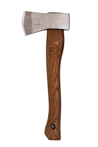 1882年からのノルウェーの老舗斧メーカーが作る手斧は、高い信頼性があります。バットにも使われるタモ材を柄に使い、鋼も硬軟のバランスがとれた合金が使用されています。柄の色味が特徴的な濃い茶色で、全体的に渋くてクールなデザインです。品質、サイズ、安全性が揃った高い評価の手斧だけあって値段が少し高めです。