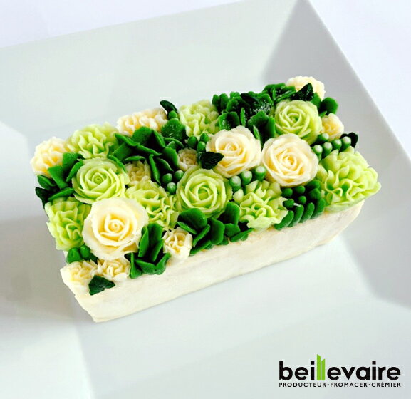 ガトーオブーケのヴェルトローズは、グリーンを基調にした花がちりばめられた「お菓子ブーケ」という言葉がぴったりのおしゃれなケーキです。箱を開けると小さな花畑のようなリアル感のある花々が目に飛び込んできます。花はバタークリームで作られ、その下にはダクワーズ生地とバタークリーム、アクセントにフランボワーズのジャムが入っています。花の種類はいくつかあるため、ブーケを選ぶように楽しく選びましょう。
